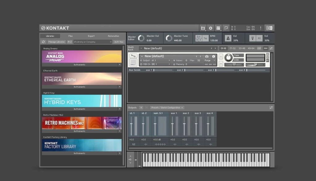 Kontakt は強力な機能を備え、ほぼすべての楽器を網羅する非常に広範なエコシステムを備えています。Kontakt を使って独自の楽器を作成することもできます。MIDI キーボードを接続して直接再生したり、サウンドライブラリのカバーアートを変更してサウンドライブラリをカスタマイズしたりすることも可能です。